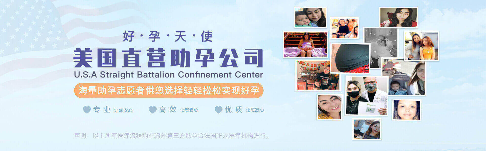 孕育生命,生生不息,只为传承,生命有传承,家庭就有希望。版权所有 © Copyright © 2022-2040 晶晶育婴中心致力于为国内乃至全世界患者,提供生殖健康咨询服务的平台,响应千万不孕不育家庭的号召,依托优选的生殖领域团队资源、秉承“用生命传承一份力量,点燃千万家庭圆梦的希望”的使命、坚守“一站式服务”的理念。针对国内中高端需求家庭全面打造了3A服务体系,部部紧密衔接,包含:优选生殖领域团队部门、先进生殖健康咨询服务部门、高素质协调部门。为国内生殖健康需求人群提供全面、可靠的海外生殖一站式服务,真正改变国内不孕不育这一庞大人群的堪忧现状,为社会贡献一己之力,成为行业内值得信任的生命科技服务企业。